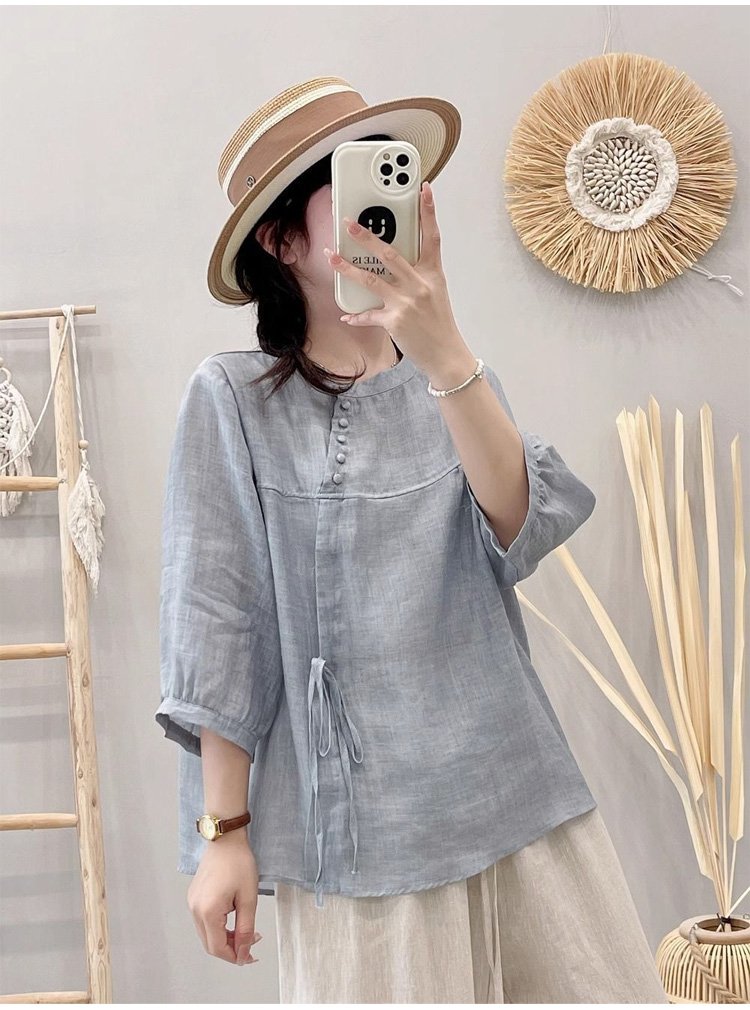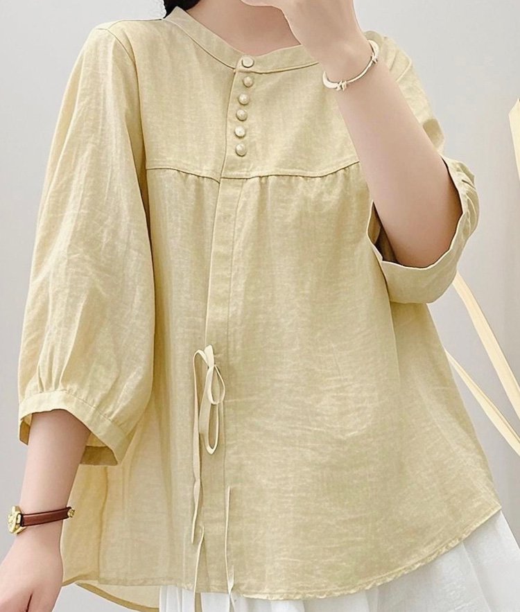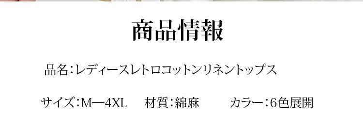 おしゃれな女性向けレトロコットンリネントップス背面画像